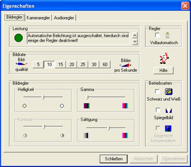 Unter "Eigenschaften=>Bildregler" muss man die Vollautomatik abschalten und den Gamma Bereich ganz runter regeln.