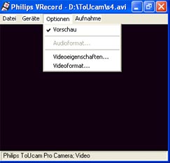 Hat man alles angeschlossen, startet man die Webcamsoftware. Dabei muss man vorher die Bildgröße und die Einzelbildrate einstellen. Die Bildgröße stellt man am besten auf 640x480 und die Bildrate auf ca. 15. Je kleiner die Bildrate, desto besser ist die Bildqualität aber die Aufnahmedauer verlängert sich entsprechend.