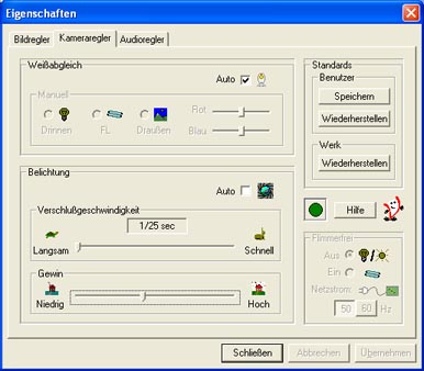Unter "Eigenschaften=>Bildregler" muss man die Vollautomatik abschalten und den Gamma Bereich ganz runter regeln.