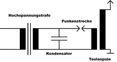 parallel geschaltet. Die Funkenstrecke stellt eine Unterbrechung im