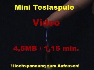 So, hier gibt es ein kurzes Video vom Betrieb meiner kleinen Teslaspule. Da meineVidoekamera leider nicht so empfindlich ist, sind die Funken nicht optimal sichtbar. Aber es lohnt sich das Video anzuschauen!